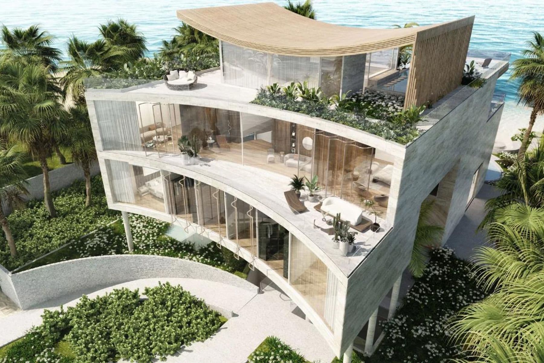 Using high-end natural materials such as travertine and marble, ZUHA Island's ultra-modern villas will look as sophisticated and luxurious as possible. Each royal residence will feature 4 unique levels that will rise from the shoreline to the vast horizon, and will be centered around a spiral staircase. To create a truly extraordinary and extravagant look, the shapes and outlines of the ZUHA Island Villas will resemble the island, the ocean, the wind and the waves.