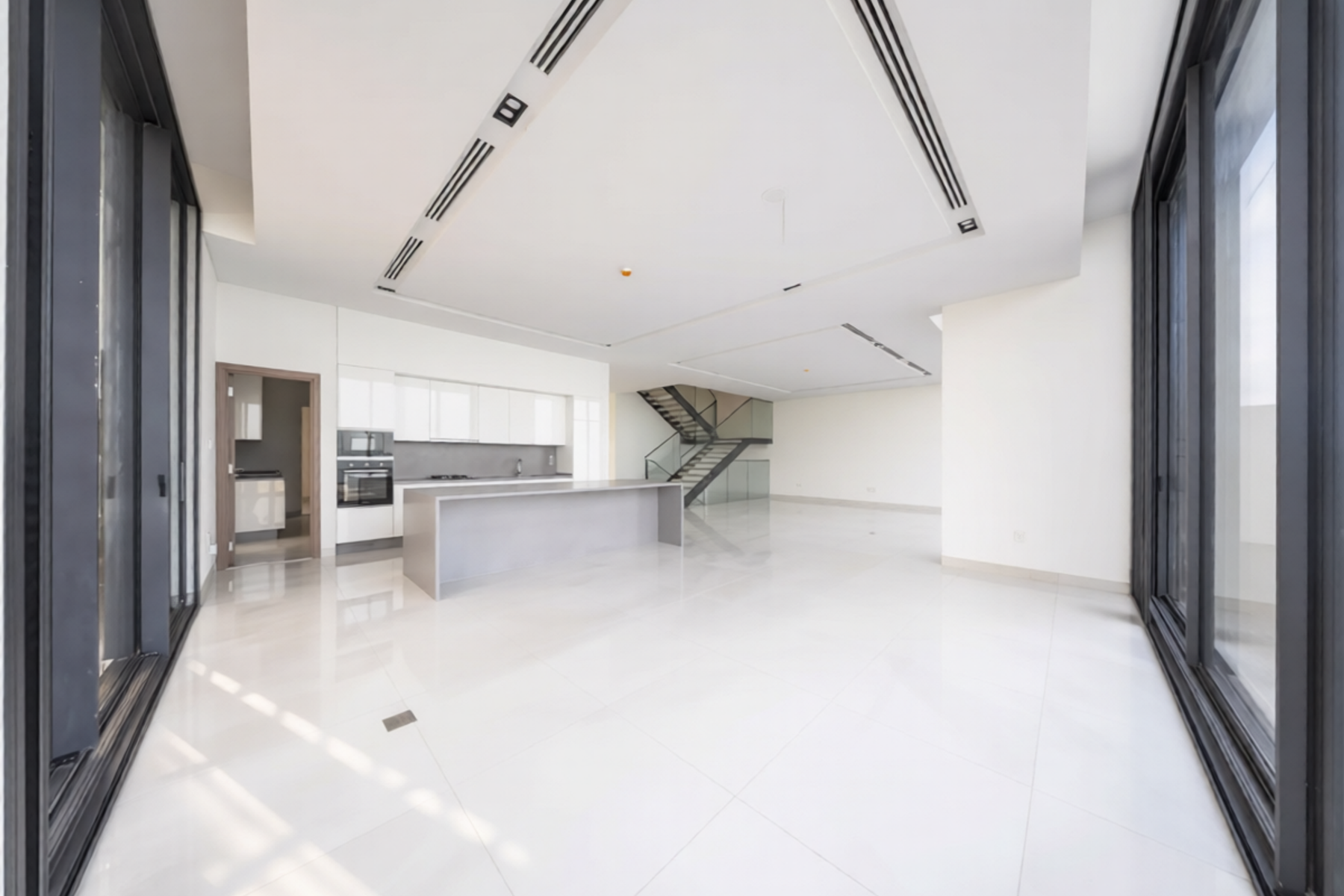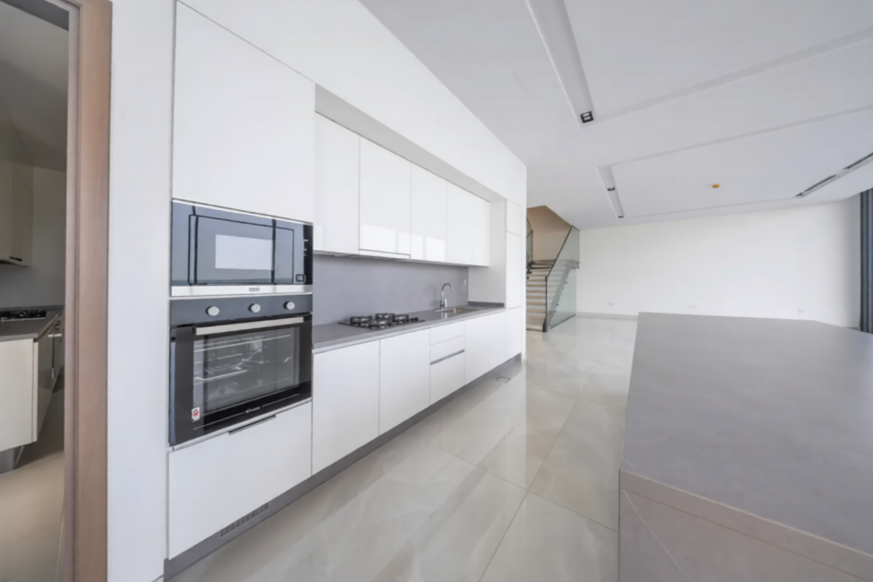 The residence is designed with spacious open-plan living and dining areas, enhanced by floor-to-ceiling windows that flood the interiors with natural light while framing uninterrupted sea views. The modern kitchen is elegantly finished with high-quality fittings, combining style and practicality for everyday living and entertaining.
