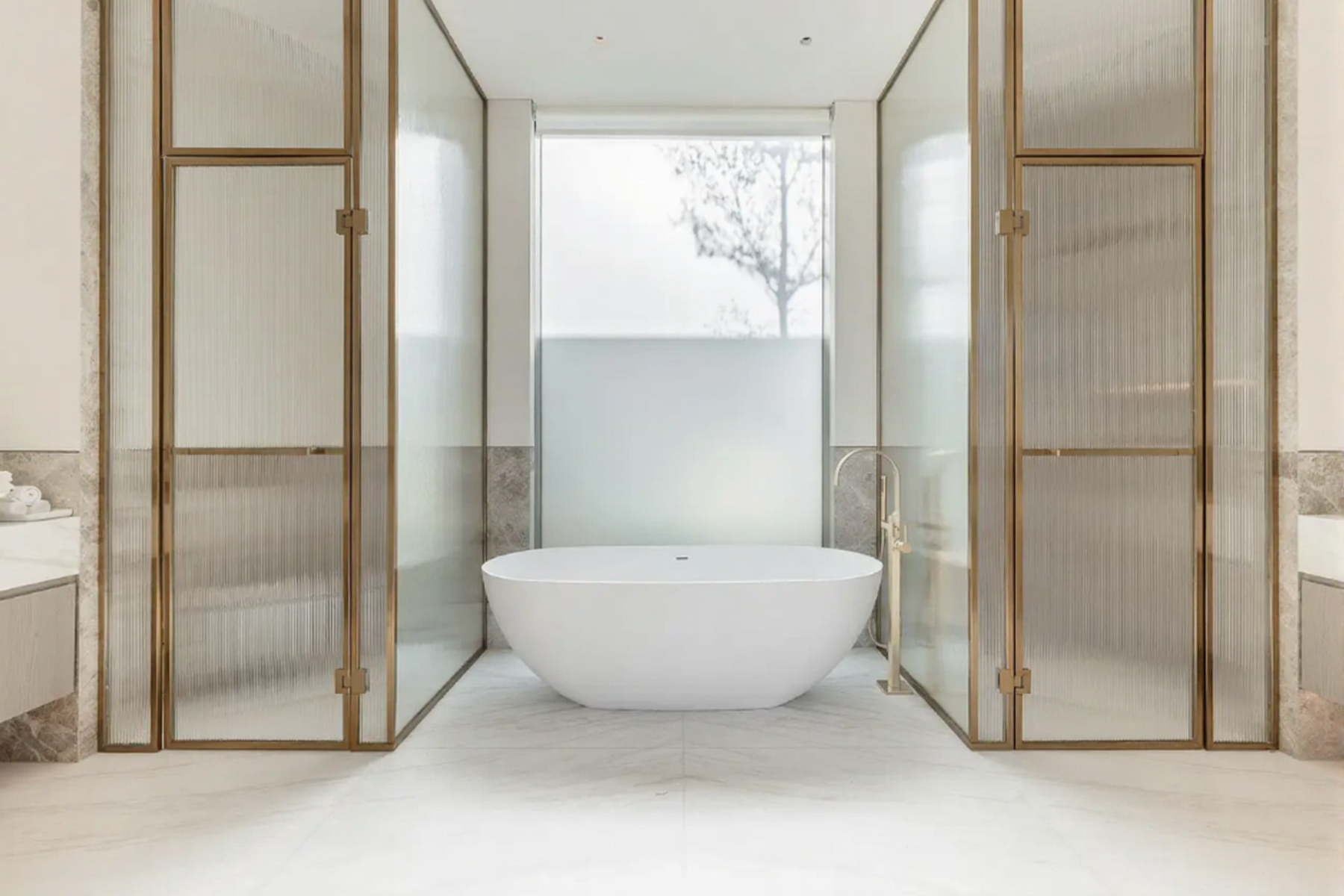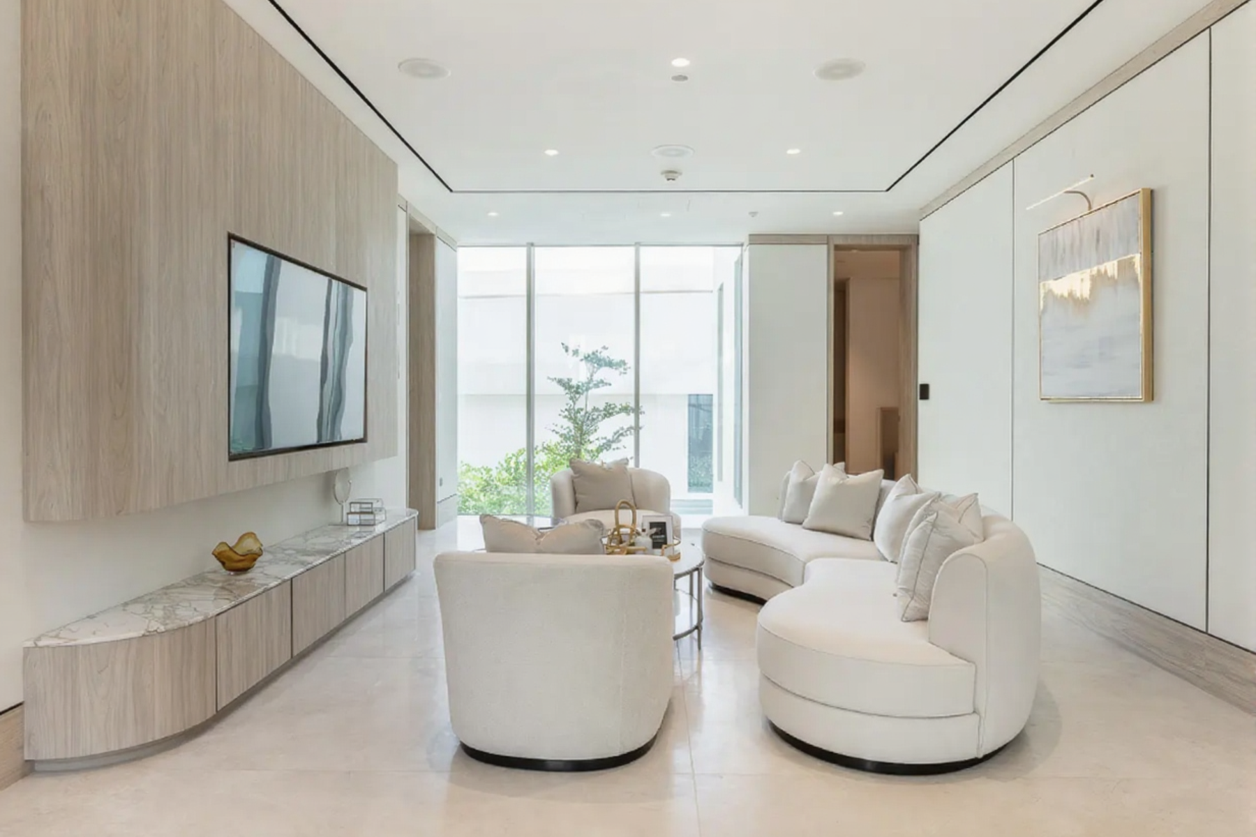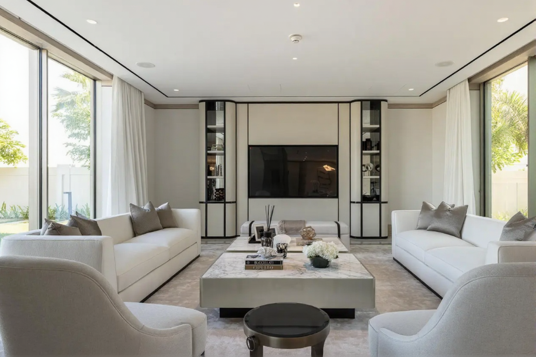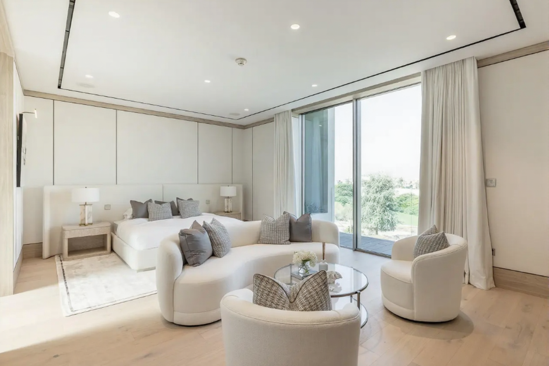 Главная спальня располагает впечатляющей гардеробной, а во всех спальнях установлены окна от пола до потолка с видом на поле для гольфа.