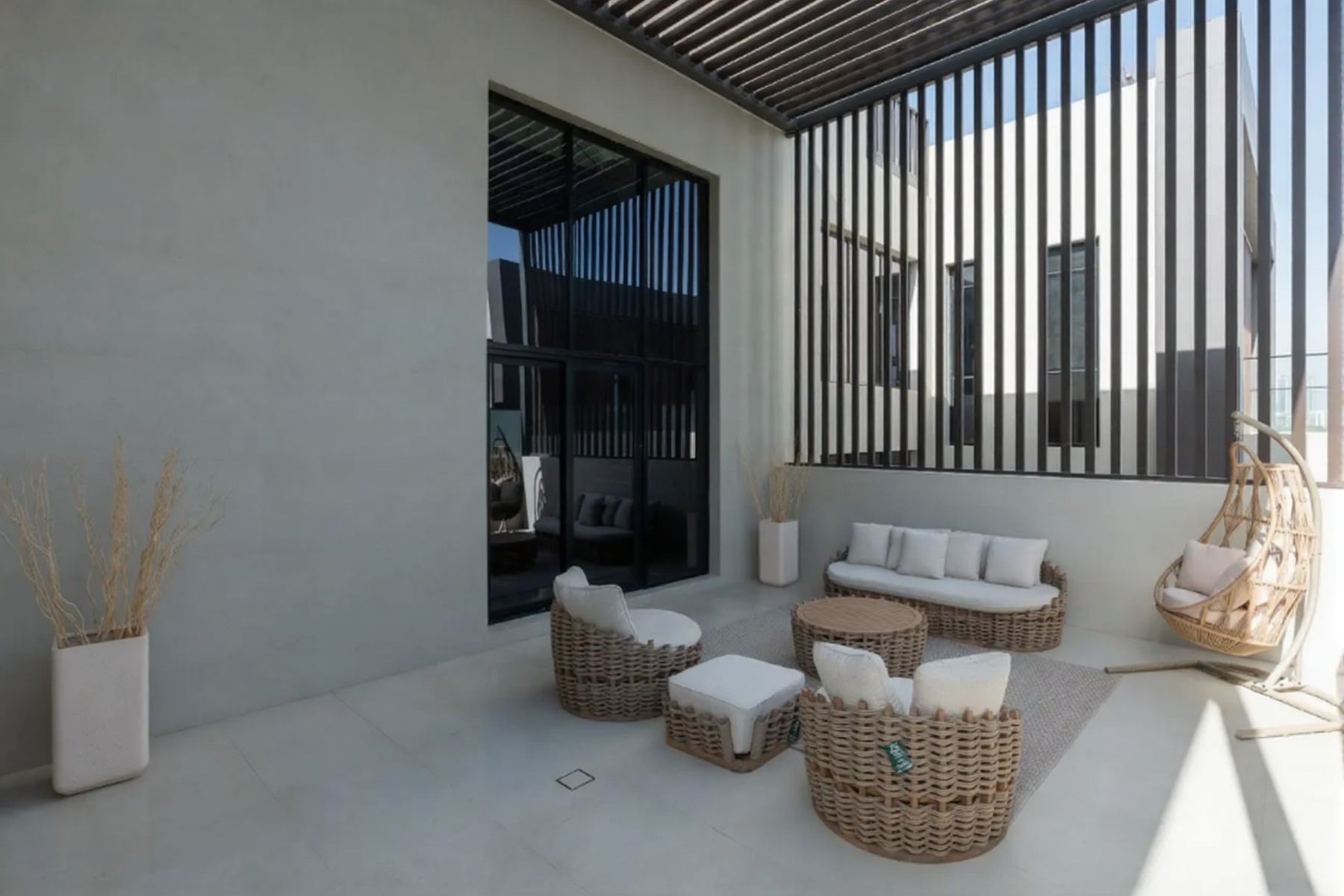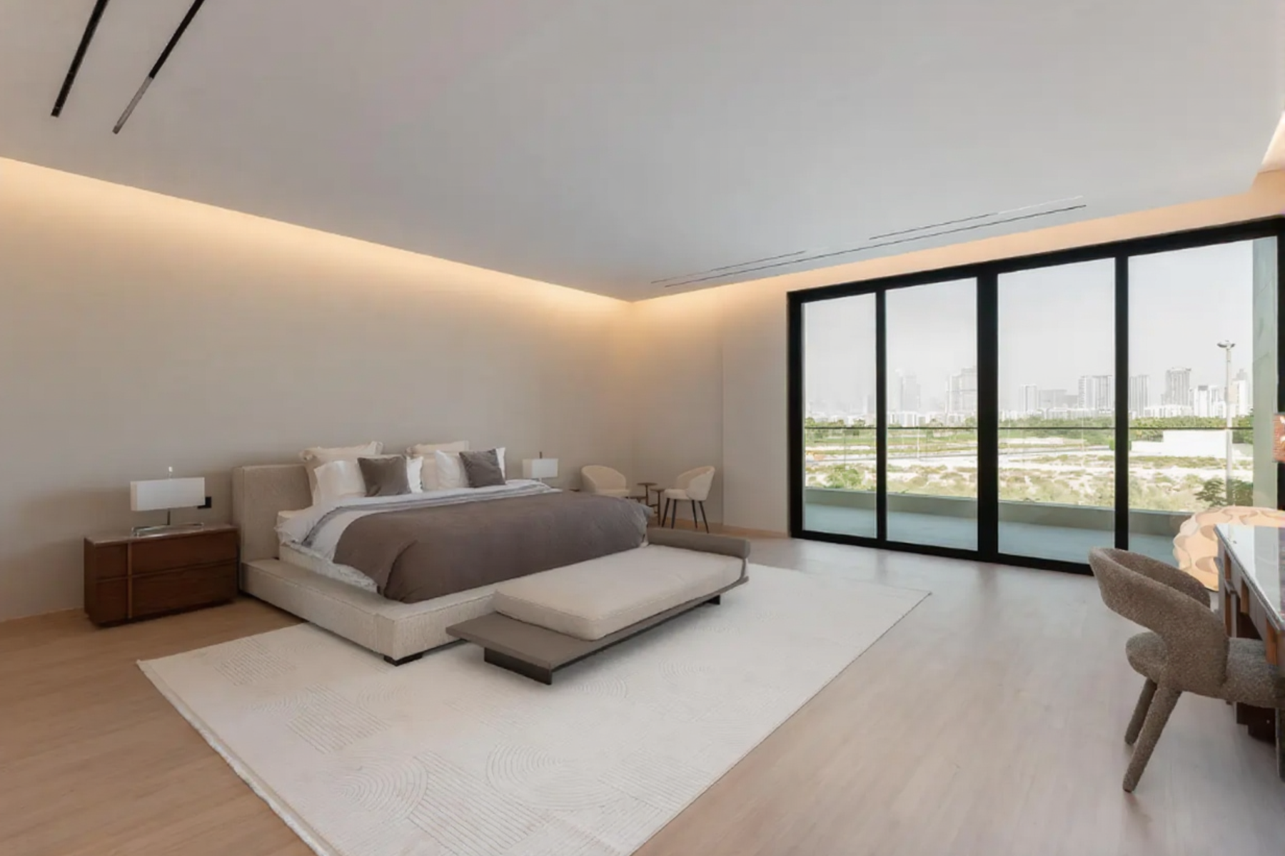 Вилла включает восемь просторных спален с ванными комнатами, идеально подходящих для больших семей. В каждой спальне есть встроенные шкафы и живописный вид на окрестности и в сторону центра Дубая, включая Бурдж-Халифа. Просторные террасы, зоны на крыше и частный бассейн, окруженный ландшафтными садами, создают идеальную атмосферу для отдыха и развлечений на свежем воздухе.