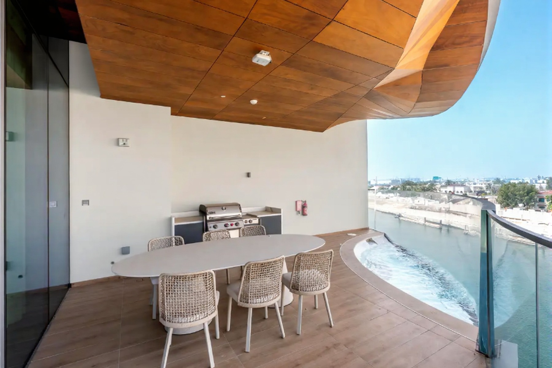 Все три спальни имеют элегантные ванные комнаты, вместительные встроенные шкафы и собственные балконы. Главная терраса, занимающая всю площадь комплекса, является его главной изюминкой и предлагает частный небольшой бассейн, зону барбекю и открытую обеденную зону — идеально подходящую для проведения вечеринок.